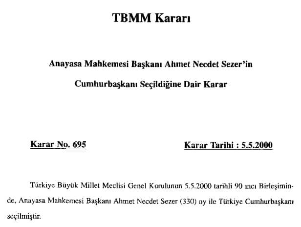 Abdullah Gül‘ün, Ahmet Necdet Sezer‘in, Süleyman Demirel‘in, Turgut Özal‘ın Cumhurbaşkanı seçildiğine dair Resmî Gazete’de yayımlanan TBMM kararlarında da “Türkiye Cumhurbaşkanı” ibaresi geçmiş.