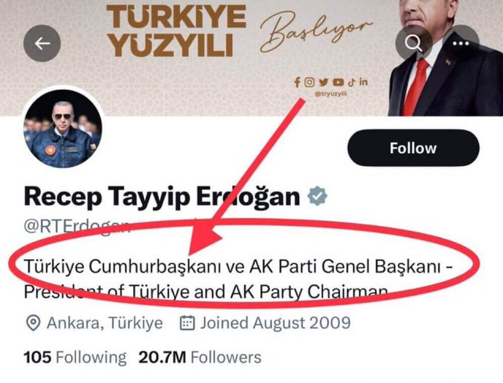Cumhurbaşkanı Recep Tayyip Erdoğan’ın 28 Mayıs 2023 Günkü Seçimin Ardından Sosyal Medya Profillerinde “Türkiye Cumhuriyeti Cumhurbaşkanı” Yerine “Türkiye Cumhurbaşkanı “Unvanını Kullanmaya Başladığı İddiası Doğru Değil
