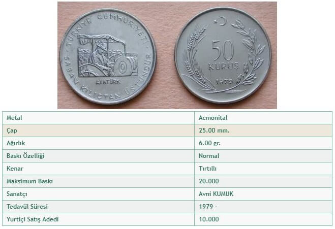 | F.A.O. 50 Krş. “Saban Kılıçtan Üstündür” | 50 Kuruş | 1979 | 10.000 |