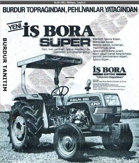 1984 yılında kapanan Burdur Traktör ve Önyükleyici Fabrikası’nda (Bur-Trak), Japon İşbora (IHI- SHIBAURA) markasıyla Türkiye’nin ilk çift çekişli traktörü üretildi.