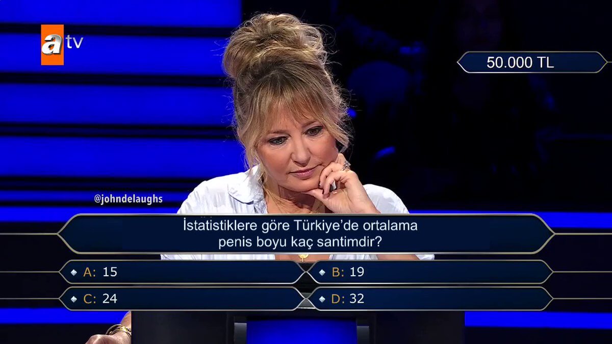 ATV’de yayınlanan Kenan İmirzalioğlu’nun sunduğu Kim Milyoner Olmak ister adlı programda Türkiye’nin ortalama penis boyunun kaç santimetre olduğu yönünde bir soru sorulduğunun sanıldığı görülüyor.