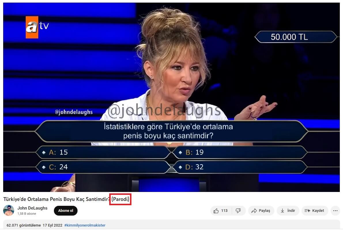 Video, 17 Eylül 2022 günü “Türkiye’de Ortalama Penis Boyu Kaç Santimdir? (Parodi)” başlığıyla Youtube’e yüklenmiş.