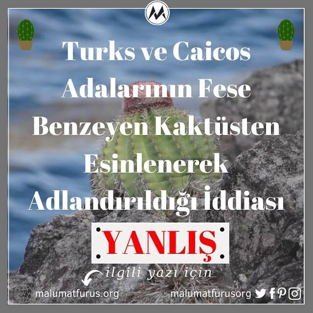 Turks ve Caicos Adalarının Fese Benzeyen Kaktüsten Esinlenerek Türk Olarak Adlandırıldığı İddiası Doğru Değil