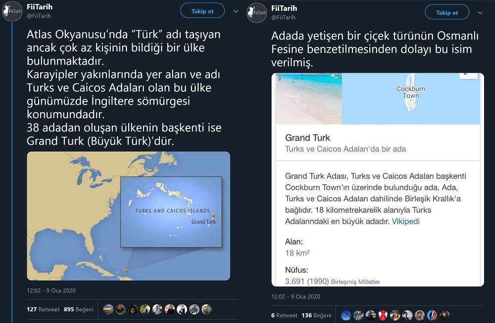 Turks ve Caicos Adaları’nın ismindeki Türk’ün kökenine dair hatalı bilgi paylaşan fazla sayıda köşe yazarına rastlayamadık.
