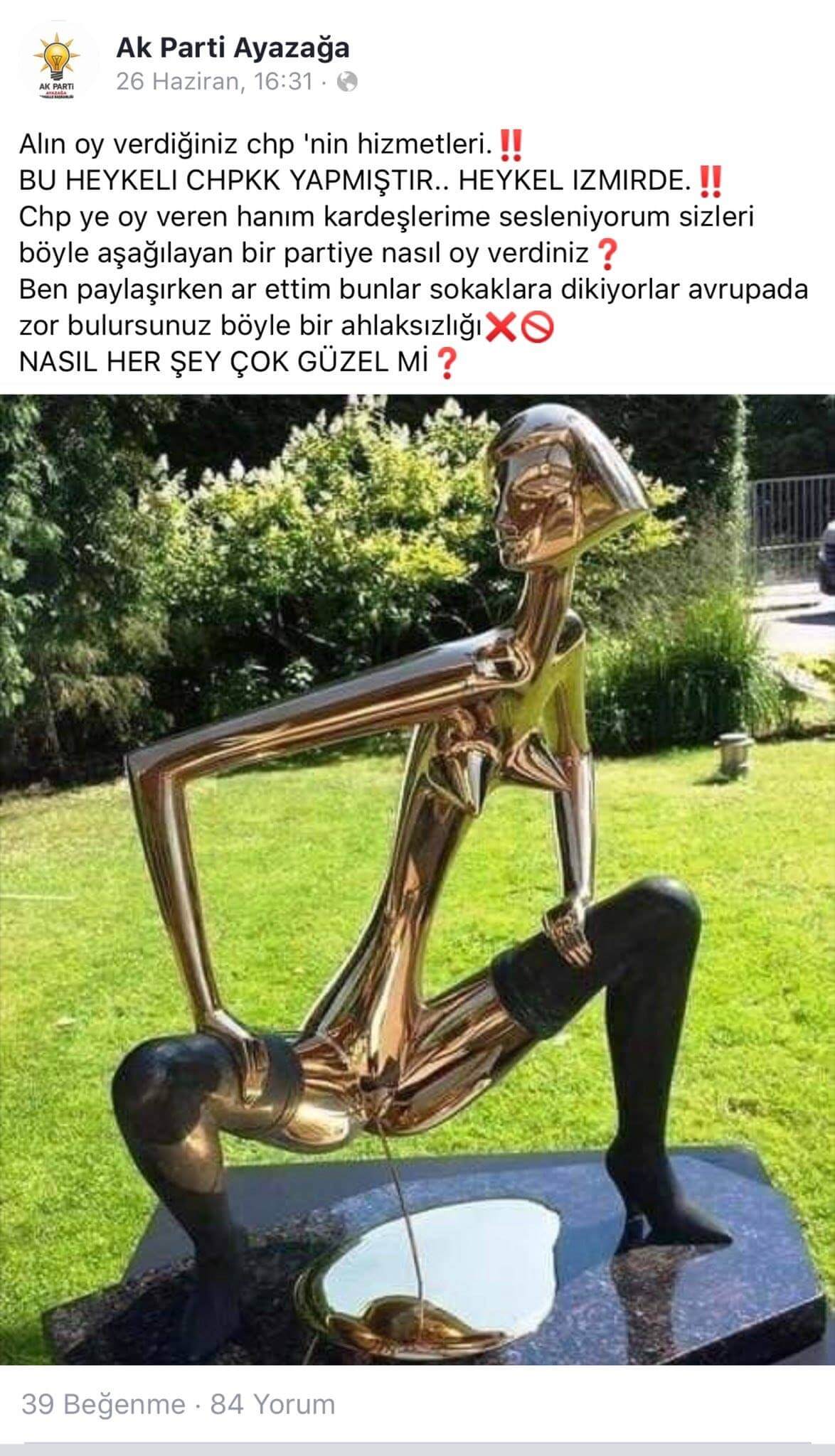 İzmir’de CHP tarafından yapıldığı iddiasıyla sosyal medyada paylaşılan yere idrarını yapan kadın heykeli de ülkemizden değil.