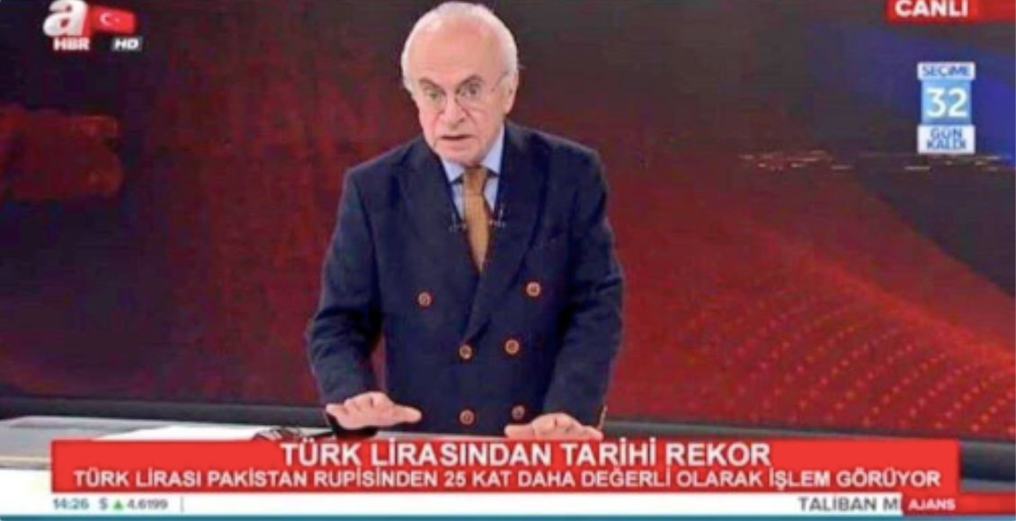 A Haber'in alt bandının "Türk Lirasından tarihi rekor - Türk Lirası Pakistan Rupisi’nden 25 kat daha değerli olarak işlem görüyor" şeklinde montajlandığı görsel