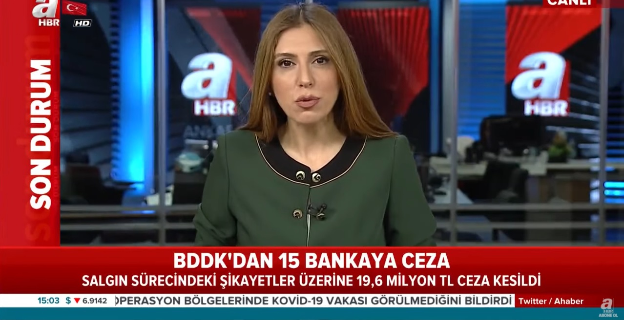 A Haber’in 15 Mayıs 2020 tarihli BDDK’nın bankalara şikayet üzerine ceza uygulamasını aktaran yayınından ekran görüntüsü