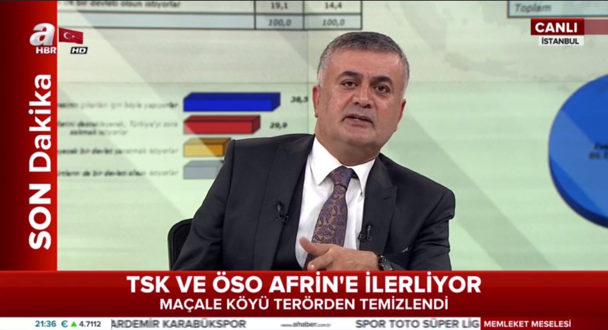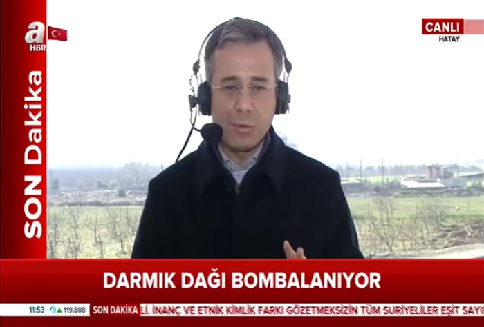 A Haber’in Adil Gür’ün yorumu esnasında verilen “TSK ve ÖSO Afrin’e İlerliyor” alt bandı