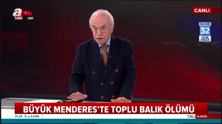 A Haber’in "Büyük Menderes'te toplu balık ölümü" alt bantlı ekran görseli