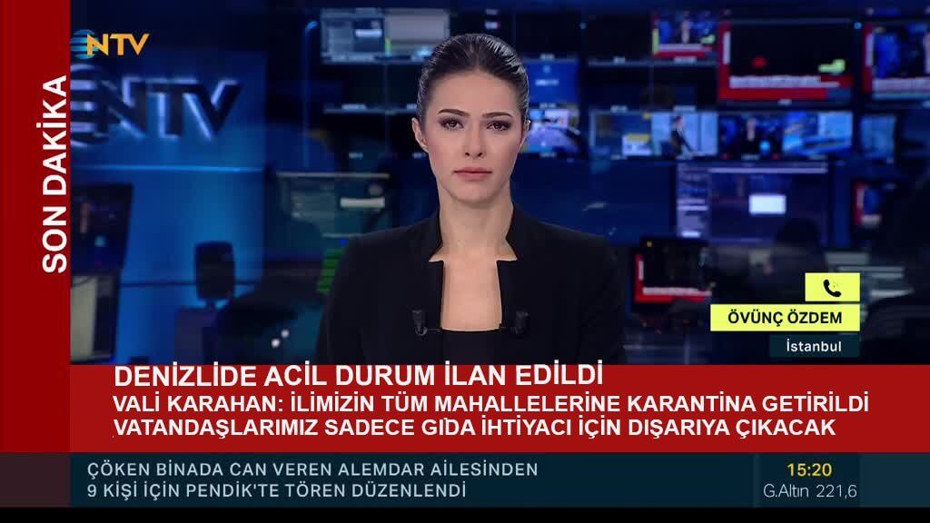 Denizli’de koronavirüs salgını nedeniyle acil durum ilân edildiğini ve karantinanın başladığını öne süren görsel NTV’nin ekran görüntüsü kullanılarak oluşturulmuştu. İddianın ciddiye alınarak yaygın şekilde sosyal medyada paylaşılması ve panik oluşturmasının akabinde Denizli Valiliği yaptığı açıklamada, haberin yalan olduğunu ve bu görseli hazırlayıp yayınlayanlar hakkında da yasal işlemin başlatıldığını duyurmuştu. Montajla oluşturulan ekran görüntüsünde gram altının satış fiyatı 221,6 TL olduğu görülse de paylaşıldığı anda 1 gr altının cari satış fiyatı 360 TL civarında seyrediyordu. Ayrıca alt bantta Kartal’da 2019 Şubatında çöken binaya dair akış görülüyordu.
