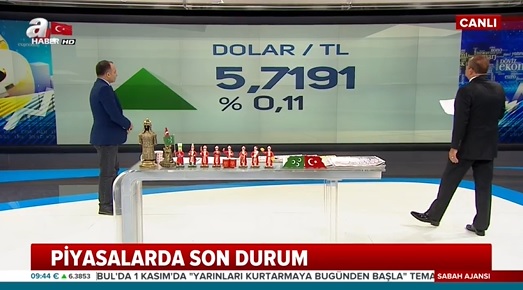 “Piyasalarda son durum” alt bandı ve “dolar/tl 5,7191” yansısını içeren 1 Kasım 2019 tarihli A Haber yayını