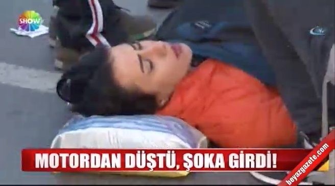 Show TV'nin "motordan düştü şoka girdi" alt bandını içeren ekran görseli