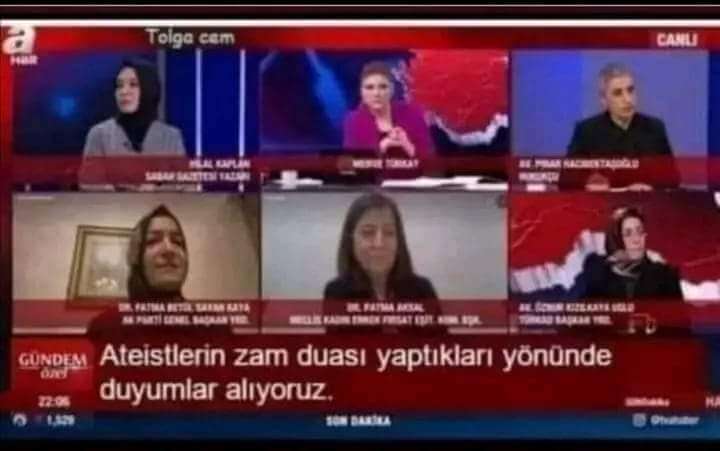 A Haber’de yayımlanan TV programında “Ateistlerin Zam Duası Yaptıkları Yönünde Duyumlar Alıyoruz” alt bandının kullanıldığı iddiası doğru değil. İstanbul Sözleşmesi’nin feshinin ele alındığı programda dönemin AK Parti Genel Başkan Yardımcısı Fatma Betül Sayan Kaya’nın açıklama yaptığı anda ekranda ilgili anda “Ankara Sözleşmesi Hazırlıyoruz” alt yazısı yer alıyordu.