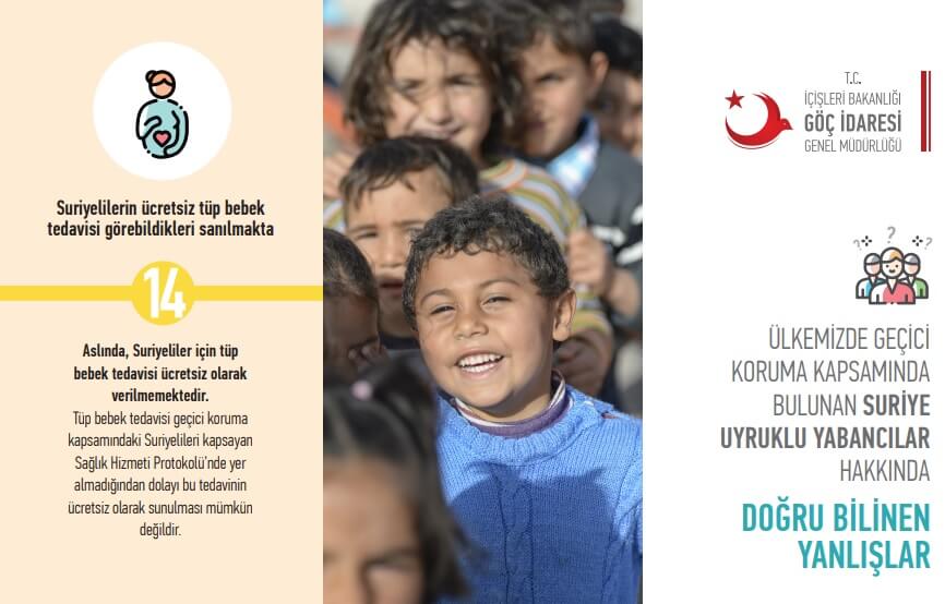 Göç İdaresi, “Ülkemizde Geçici Koruma Kapsamında Bulunan Suriye Uyruklu Yabancılar Hakkında Doğru Bilinen Yanlışlar” başlıklı broşüründe bu hususa şöyle değinilmiş: