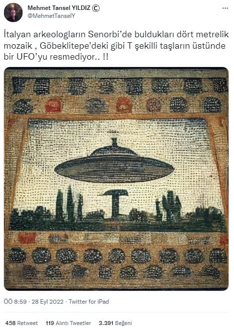 Göbeklitepe’deki Yapıları ve UFO Şeklini Barındırdığı Yorumlanan Görsel, M.Ö. 1300’lü Yıllarda İtalya’da Senorbi’de Keşfedilen Bir Mozaiğe Ait Değil