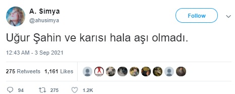 “Uğur Şahin ve karısı hala aşı olmadı.”