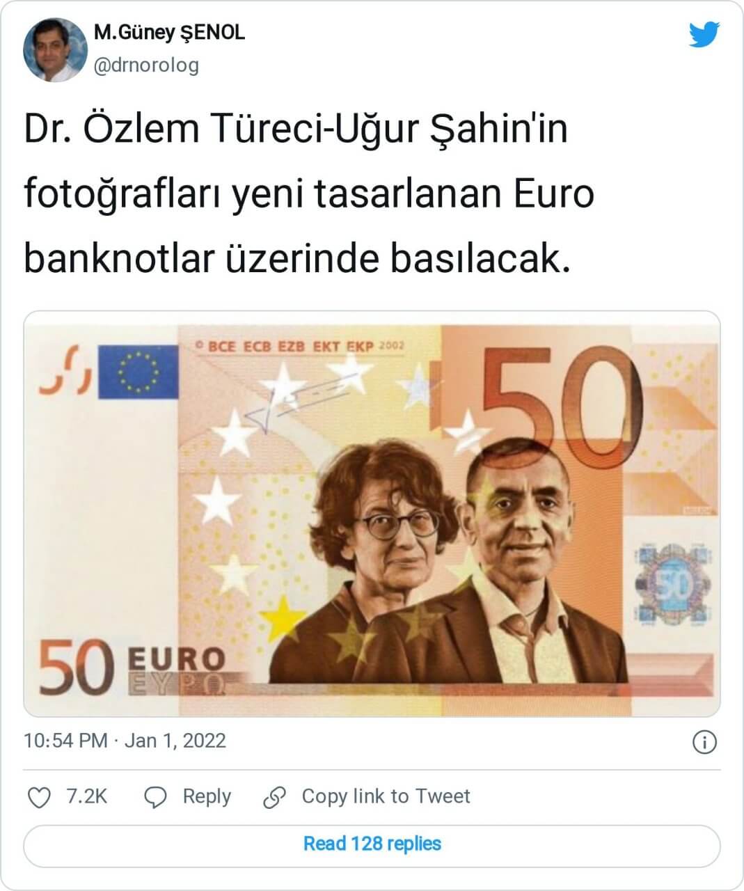 “Dr. Özlem Türeci-Uğur Şahin’in fotoğrafları yeni tasarlanan Euro banknotlar üzerinde basılacak.”