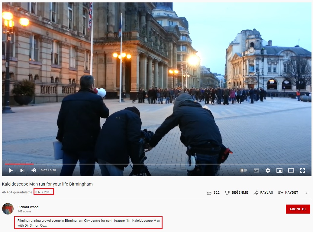 2019 yılında vizyona giren film için Birmingham’da Victoria Meydanı’nda kaydedilen görüntü, 2013 yılında Youtube’de paylaşılmış.