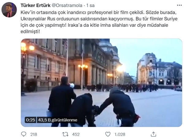 Türker Ertürk: “Kiev’in ortasında çok inandırıcı profesyonel bir film çekildi. Sözde burada, Ukraynalılar Rus ordusunun saldırısından kaçıyormuş. Bu tür filmler Suriye için de çok yapılmıştı! Iraka’a da kitle imha silahları var diye müdahale edilmişti!”