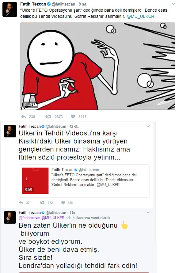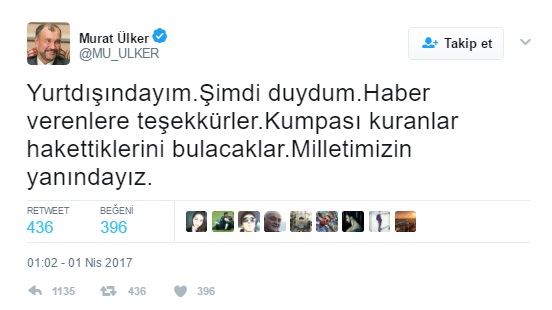 Bunlar yapmışlar bunu. Buna karşılık ben Amerika’daydım o sıra dükkan geziyordum. Müşterileri geziyordum, duyunca bir kenara geçtim. Ankara Büyükşehir Belediye Başkanı Melih (Gökçek) Bey haber verdi bana. Sağolsun baba dostudur, ondan öğrendim. Hemen bunu açıklayan bir tweet attım. Benim attığım tweet 12 milyon kişiye ulaştı. İnsanlar gerçeği öğrendiler ve bundan çok memnun oldular. Bütün bunlar olurken gece yarısı saat 12 idi Türkiye’de. Amerika’da saat 7 idi. Sabaha kadar bu iş bitti. Ama şöyle bir etkisi oldu tabii.