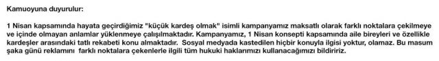 1 Nisan şakalarını konu alan seri reklam filmlerimizin birisi ile ilgili şirketimize ve markamıza yönelik akıl almaz, mesnetsiz bir karalama kampanyası başlatıldı.