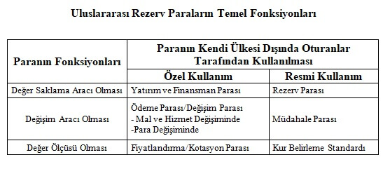 Günümüzde hükümetlerin sahip oldukları rezervlerin önemli kısmı dünya piyasalarında geniş kabul gören ve uluslararası para olarak değerlendirebileceğimiz dövizlerden oluşmaktadır. Ülkelerin uluslararası rezerv talep etmelerinin en önemli nedeni, uluslararası rezervlerin krizlere karşı bir tampon olarak kullanılabilmesidir. Bunun bir yansıması olarak uluslararası rezervler, dış borç geri ödemelerinde, döviz kurunda ve ödemeler dengesi bilançosunda meydana gelebilecek ani değişimleri önlemek için başvurulan bir kaynak olmuştur (Yaman 2003).