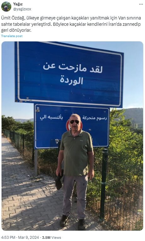 Yağız (@yagizxox): “Ümit Özdağ, ülkeye girmeye çalışan kaçakları yanıltmak için Van sınırına sahte tabelalar yerleştirdi. Böylece kaçaklar kendilerini İran’da zannedip geri dönüyorlar.”