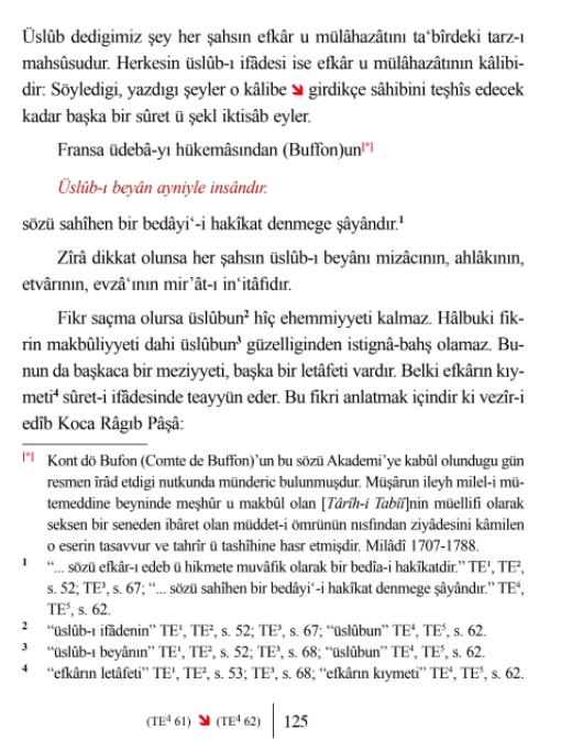 Fransa üdebâyi’-i hükemâsından (Buffon)un Üslûb-ı beyân ayniyle insândır. sözü sahîhen bir bedâyi’-i hakîkat denmege şâyândır.