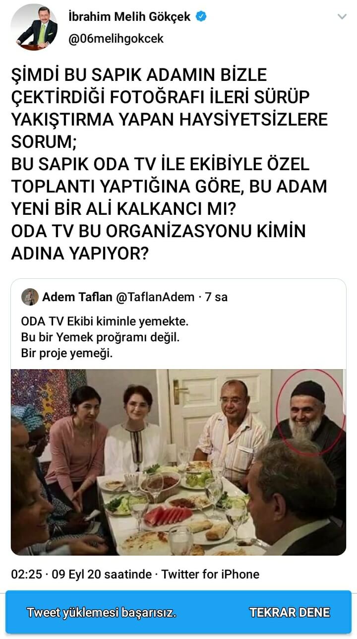 “Şimdi bu sapık adamın bizle çektirdiği fotoğrafı ileri sürüp yakıştırma yapan haysiyetsizlere sorum; bu sapık Odatv ile ekibiyle özel toplantı yaptığına göre bu adam yeni bir Ali Kalkancı mı? Odatv bu organizasyonu kimin adına yapıyor”