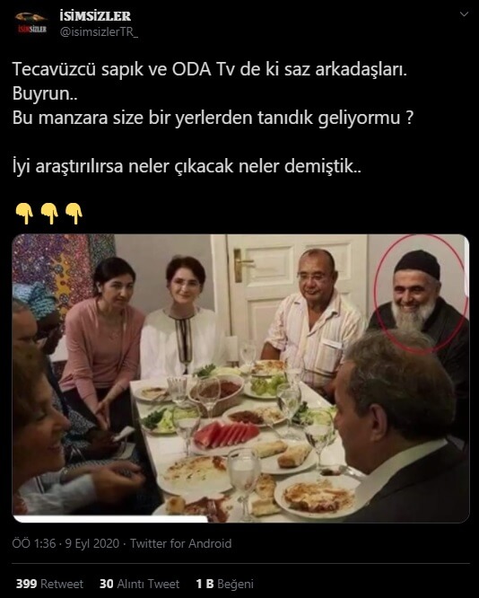 “Tecavüzcü sapık ve ODA Tv de ki saz arkadaşları. Buyrun.. Bu manzara size bir yerlerden tanıdık geliyormu ? İyi araştırılırsa neler çıkacak neler demiştik..”