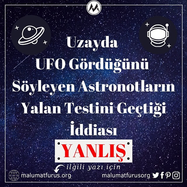 Fasılalar halinde basınımıza yansıyan bir yanlış iddia mevcut: Yapılan bir araştırmayla NASA astronotları Buzz Aldrin, Al Worden, Edgar Mitchell ve Gordon Cooper’ın özel bir yalan testinden geçerek UFO gördüklerini doğruladıkları iddiası.