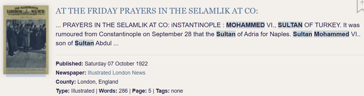 Bahsi geçen fotoğraf, Vahdettin İstanbul’u terk etmeden önce 7 Ekim 1922 günü Illustrated London News adlı dergide yayımlanmış.