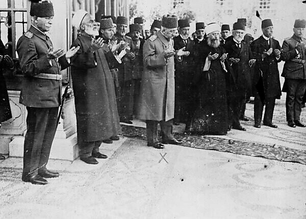 Padişah Vahdettin’in 17 Kasım 1922 günü İstanbul’dan ayrılmadan önce devletin bekâsı için şeyhülislamla dua ederken görüntülendiği iddiasıyla paylaşılan fotoğraf da bu tarihten önce kaydedilmiş.