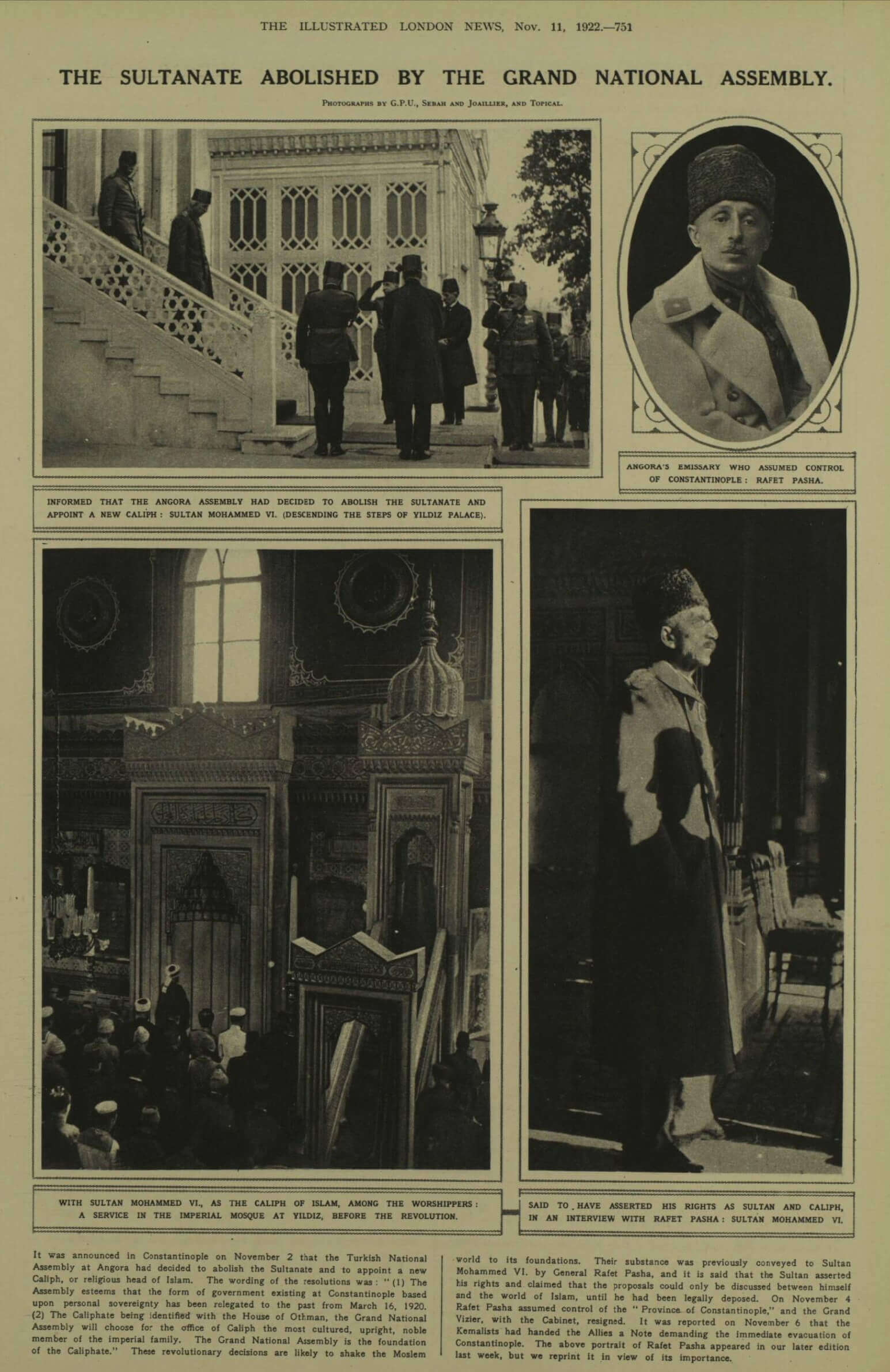 Vahdettin’in Yıldız Sarayı’nın merdivenlerinde görüntülendiği fotoğraf da Illustrated London News adlı derginin 11 Kasım 1922 tarihli sayısında yayımlanmış.