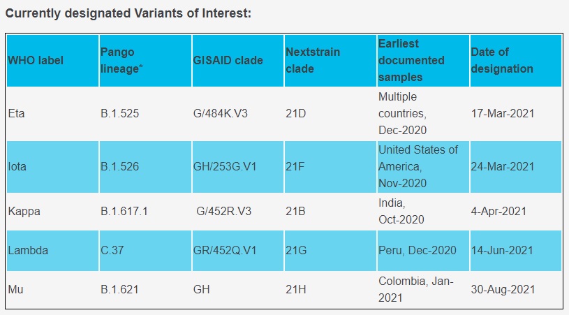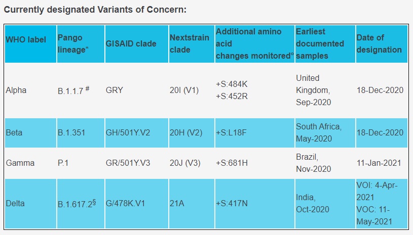 DSÖ, 2021 yılı Haziran ayından itibaren koronavirüs varyantları için yeni isimlendirmeler için delta, epsilon veya lambda gibi Yunanca harfleri kullanma kararını almıştı.