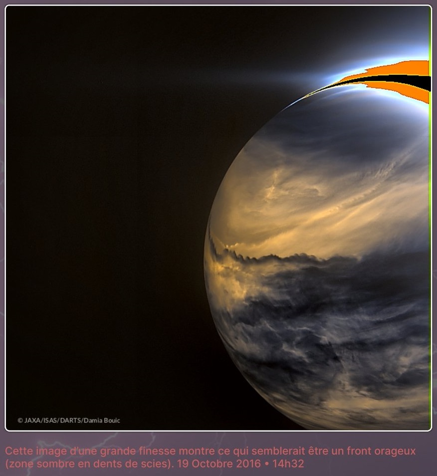Paylaşılan görsel Venüs’ün en net fotoğrafı değil, JAXA’nın Akatsuki uzay aracının Venüs’ün güney tarafındaki bulutları kaydettiği kızılötesi görüntünün Damia Bouic tarafından işlemden geçirilmiş hâli.