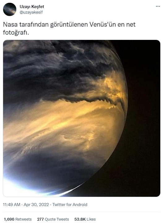 “NASA’nın kayda aldığı Venüs’ün şimdiye kadar çekilmiş en net görüntüsü.”