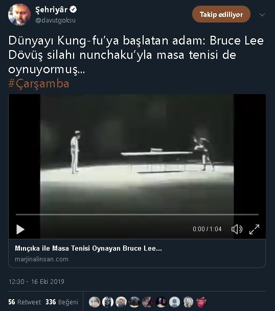 Efsanevi dövüş sanatları ustası ve aktör Bruce Lee’nin (1940-1973) mınçıka (nunchaku / nançaku) ile 2 kişiye karşı pinpon, diğer deyişle masa tenisi oynadığı siyah beyaz video kaydı pek çok kişi tarafından gerçek sanılmakta.