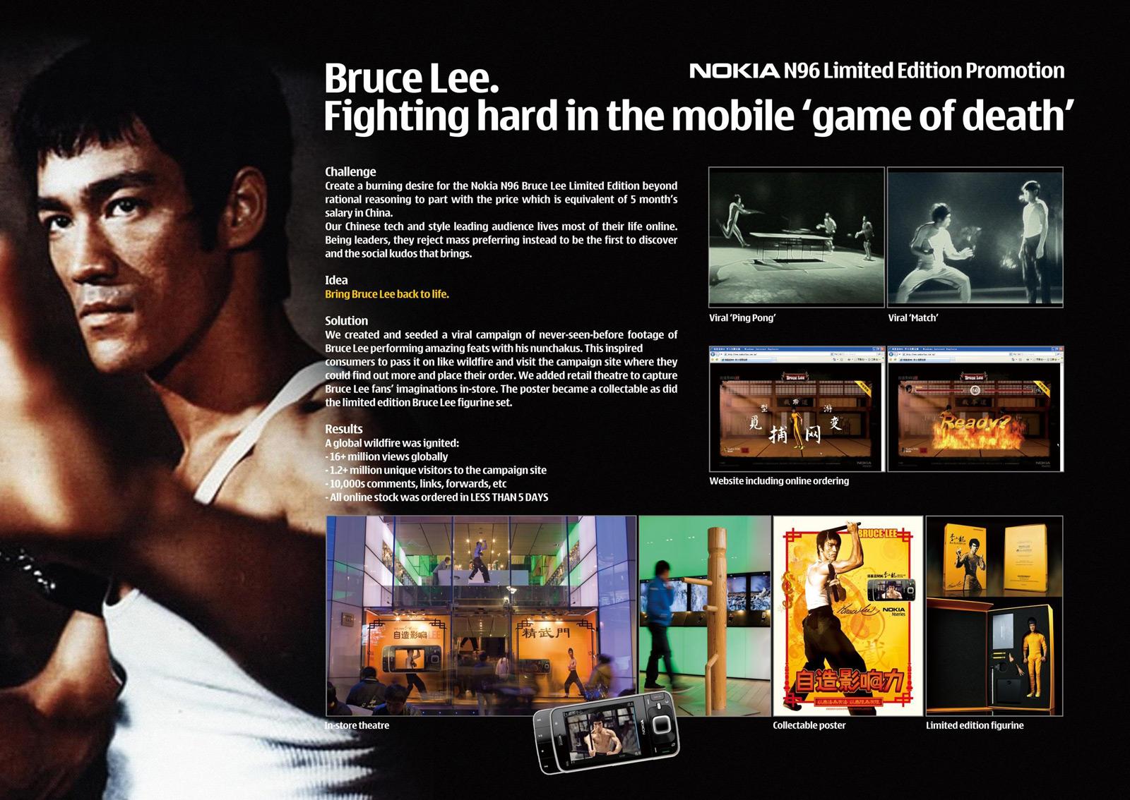 Ayrıca, Bruce Lee’nin ölümünün 35. yıldönümünde satışan sunulan reklâmı yapılan telefonun The Nokia N96 Bruce Lee Limited Edition adıyla satışa sunulduğu bilinmektedir.