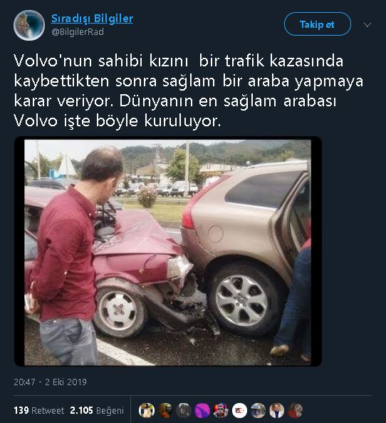 Volvo’nun tek sahibi veya Volvo’nun kurucusunun ölen bir kızı yoktu ki sağlam araç yapma motivasyonu bu olsun…