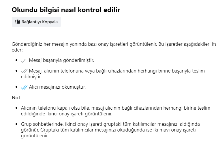 Okundu bilgisi özelliği ile ilgili WhatsApp şu açıklamayı sunuyor: