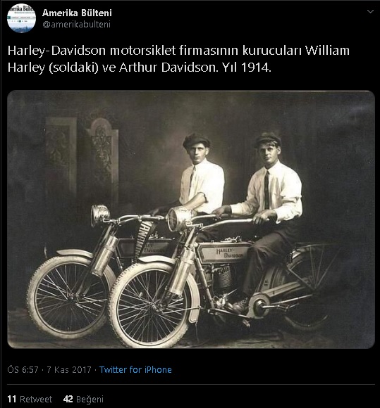 Sosyal medyaya yansıyan bazı paylaşımlarda söz konusu kişilerin Harley Davidson motosiklet firmasına adını veren William Harley ve Arthur Davidson olduğu şöyle öne sürülmüştü: