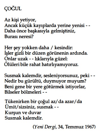 Demiştim de, o dörtlüğün altına Behçet Necatigil’in de adını eklemiştim.