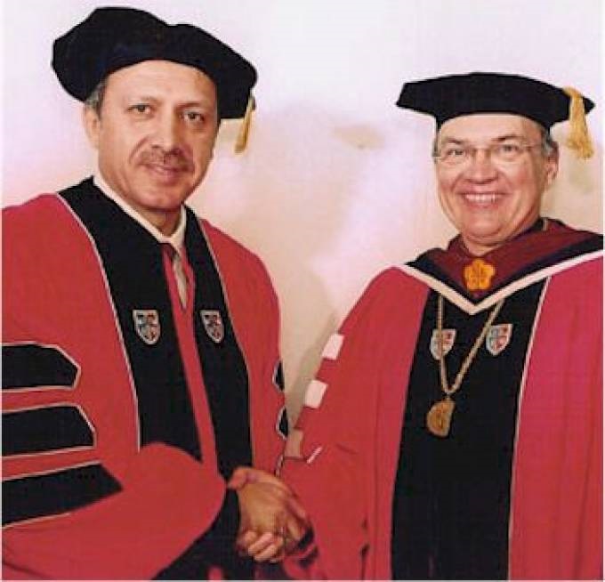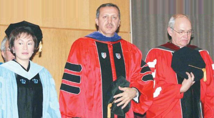 Cumhurbaşkanı Erdoğan’a “Yahudi Cesaret Ödülü” verildiği anı yansıttığı iddiasıyla paylaşılan fotoğraf aslında 2004 yılında katolik kimliğiyle tanınan St. John’s Üniversitesi tarafından şahsına fahri doktora verildiği ana aitti.