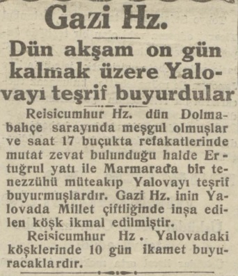 - Yalçın Bayer – Hürriyet – “Yalova’nın tartışmasız markası Atatürk’ün ‘Yürüyen Köşk’üdür” – 6 Ekim 2016