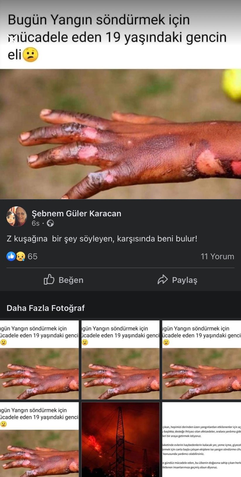 “Birinin geçmişi, Diğerinin geleceği yanıyor..! Yangın söndürmek için mücadele eden 19 yaşındaki gencin eli #TekeTekYalanYangınGercek Z Kuşağı”