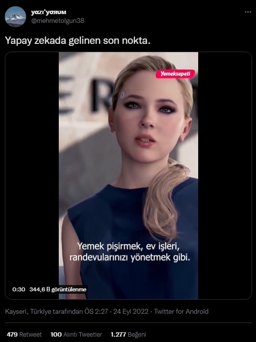“Yapay zekâda gelinen son nokta” notuyla paylaşılan video “Detroit: Become Human” adlı oyundan alıntı.