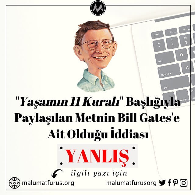 “Bill Gates’ten 11 Hayat Dersi” Başlığıyla Paylaşılan Metnin Bill Gates’e Ait Olduğu İddiası Doğru Değil