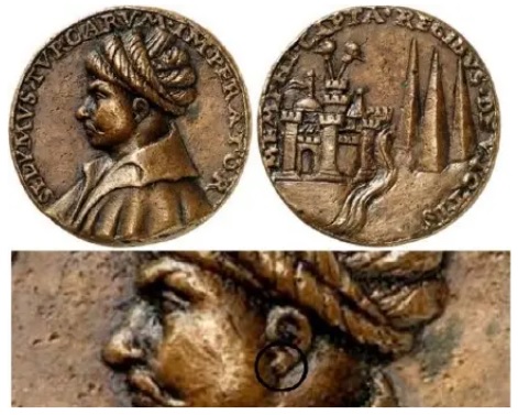 - Yavuz Sultan Selim’in bilinen ilk tasviri kimin tarafından yapıldığı bilinmeyen 1517 yılından sonra Kahire’nin fethi anısına yapıldığı düşünülen bir madalyondur. Söz konusu madalyonda Yavuz’un kulağında küpenin ve başında burma sarığın yer aldığı anlaşılmaktadır.