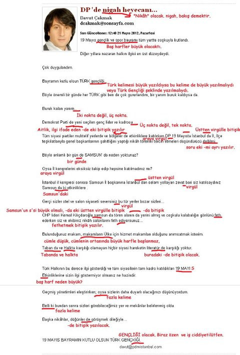 * İmlâ kuralları konusunda dikkat gösterilmesi istirhamımızdır… Aşağıdakine benzer hatalarla dolu metinlerin kasıtlı şekilde göz ardı edileceğini beyan etmiş olalım…